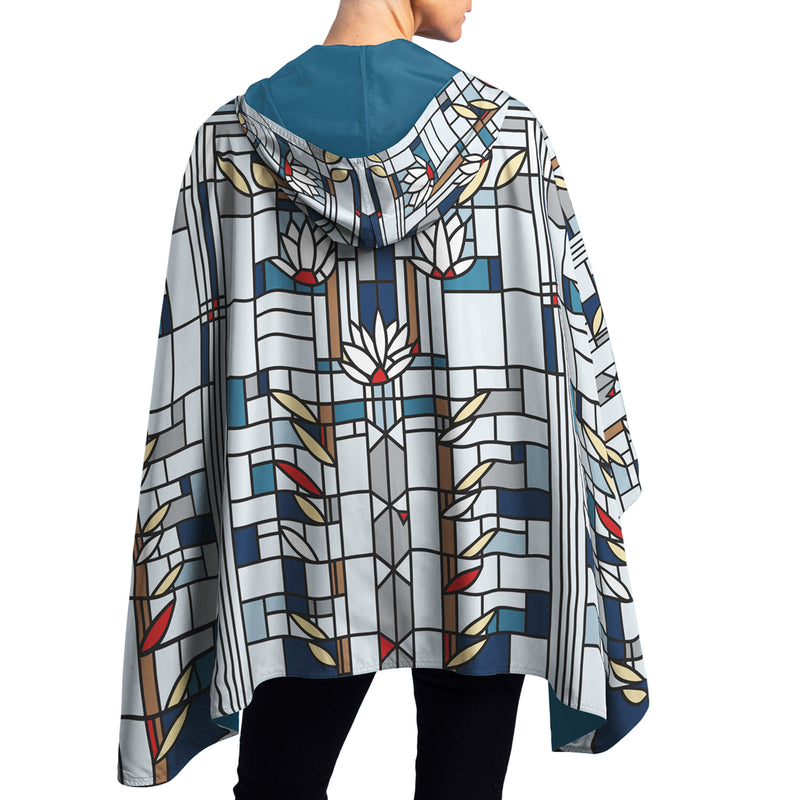 Frank Lloyd Wright Waterlilies Reversible Rain Cape Poncho – Lightweight Hooded Womens Wrap