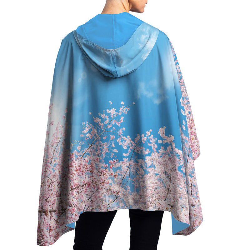 Cherry Blossom Reversible Rain Cape – Lightweight Hooded Poncho Wrap for Women