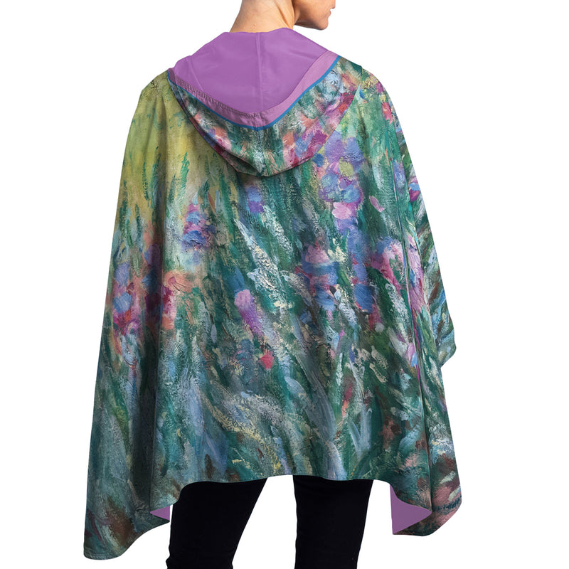 Monet Garden at Giverny Reversible Rain Cape Poncho – Lightweight Hooded Wrap for Women