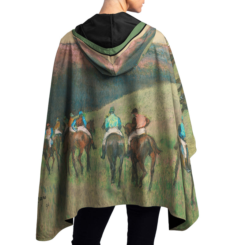 Degas "Racehorses in a Landscape" Reversible Rain Cape – Lightweight Hooded Wrap