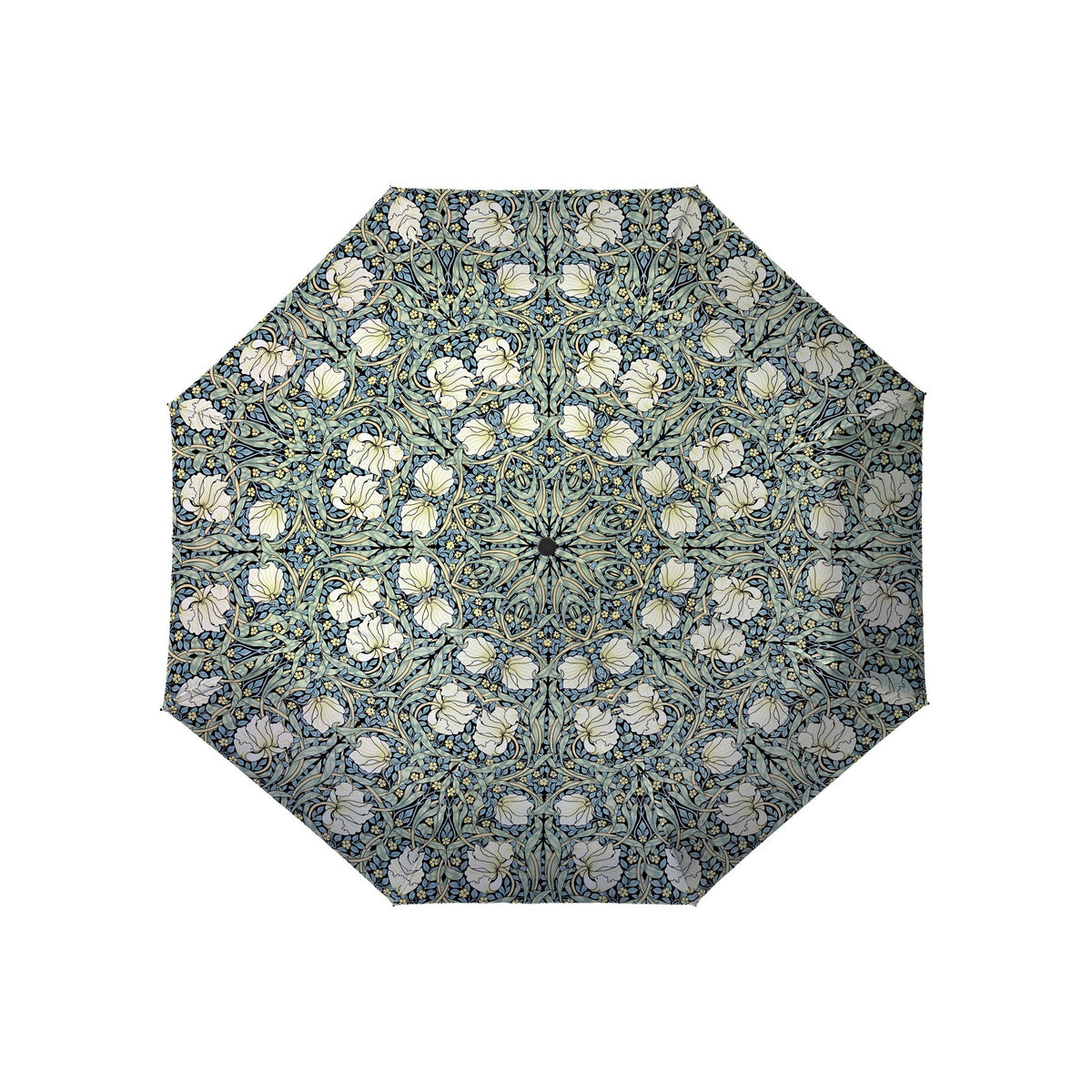 William Morris "Pimpernel" Blue/Green Travel Umbrella – Compact, One-Touch Open & Close