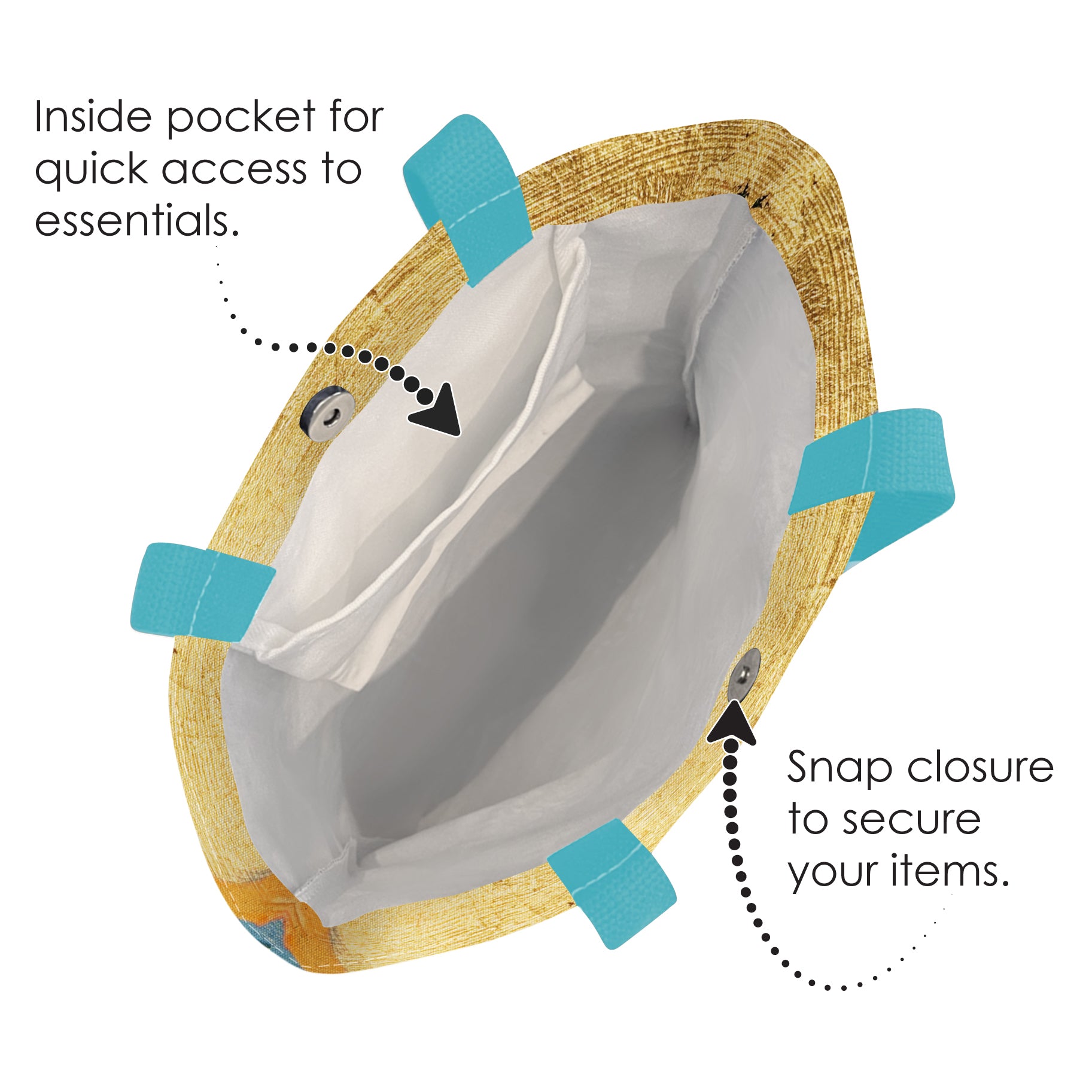 With sturdy cotton webbing shoulder straps, a magnetic snap closure, and an open interior pocket, this tote bag is ready for anything. Our vivid art designs are printed on both the front and the back, and are sure to turn heads on your errands, trip to the museum, or day at the beach.