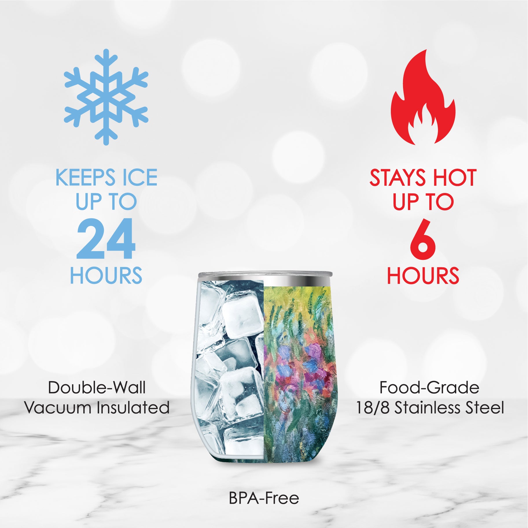 Discover the perfect blend of style and practicality with our Stainless Steel Wine Tumbler. The sleek, modern design of this Tumbler makes it a fashionable accessory for any occasion. Whether you're hitting the gym, the office, school, or the trails, it's the perfect choice. This double-wall vacuum insulated Tumbler keeps beverages hot for 6 hours and cold for 12, keeps ice frozen for up to 1 day ensuring you're always refreshed. Crafted from durable, BPA-free 18/8 stainless steel, it's a sustainable and eco-friendly choice. The leak-proof design guarantees a mess-free experience, while the wide mouth simplifies cleaning. Elevate your hydration game, reduce waste, and enjoy hassle-free adventures with this travel-friendly companion.Our product features exquisite designs inspired by the timeless artistry of Claude Monet. Monet's art is celebrated for its luminous landscapes and impressionistic style. His paintings, such as "Water Lilies" and "Impression, Sunrise," capture the essence of light and atmosphere with brushstrokes that evoke movement and emotion. Monet's mastery of color and texture continues to inspire admiration and fascination, making his artworks a timeless treasure for any art lover.Stunning rendering of Claude Monet famous art, "Garden at Giverny." The design is captured with an artist's eye for detail, light & color.