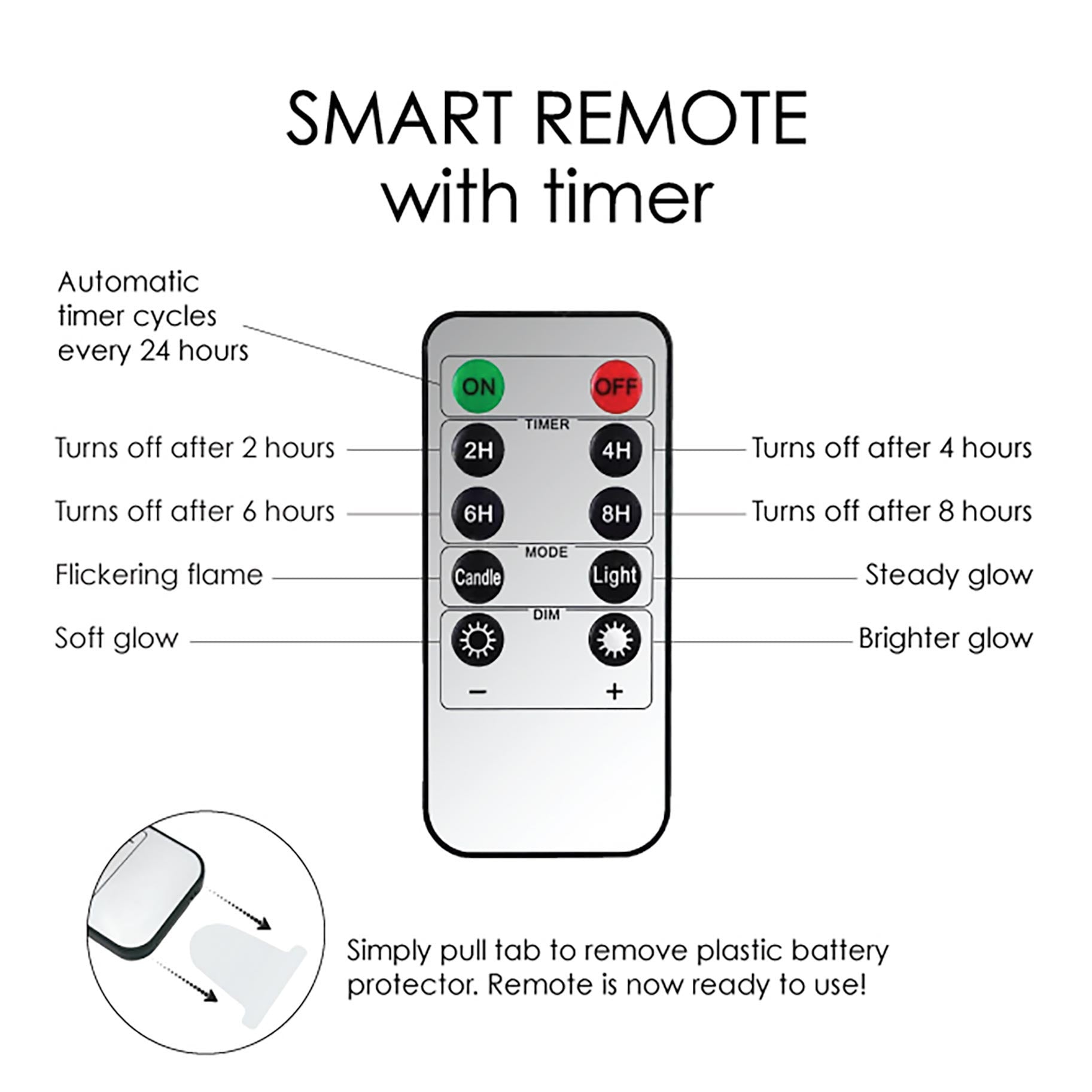 Softly illuminate any room with these elegant 6" Flameless LED candles. Fragrance-free, real wax candles light the stunning wraparound artwork from within. Each candle includes a remote control with timer and dimmer settings- choose flickering candle mode or steady glow. Flameless candles are safe for any room in your home, can be left unattended, and make a beautiful night light.