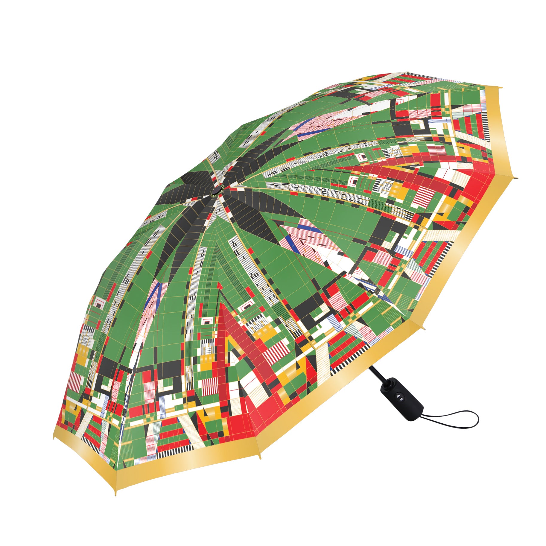 Frank Lloyd Wright Hillside Curtain Travel Umbrella – Compact, One-Touch Open & Close