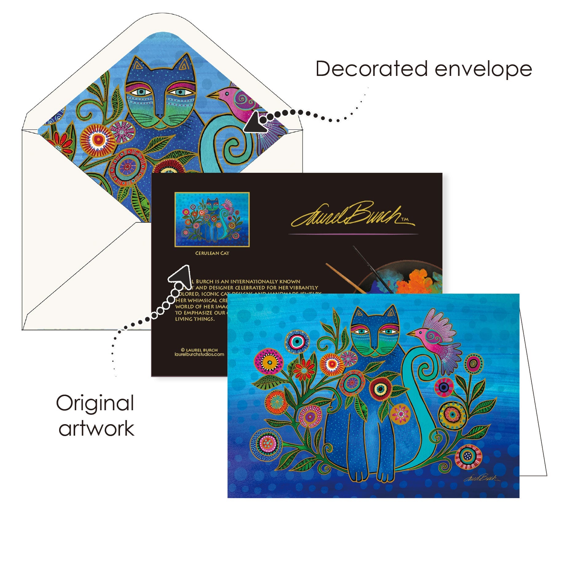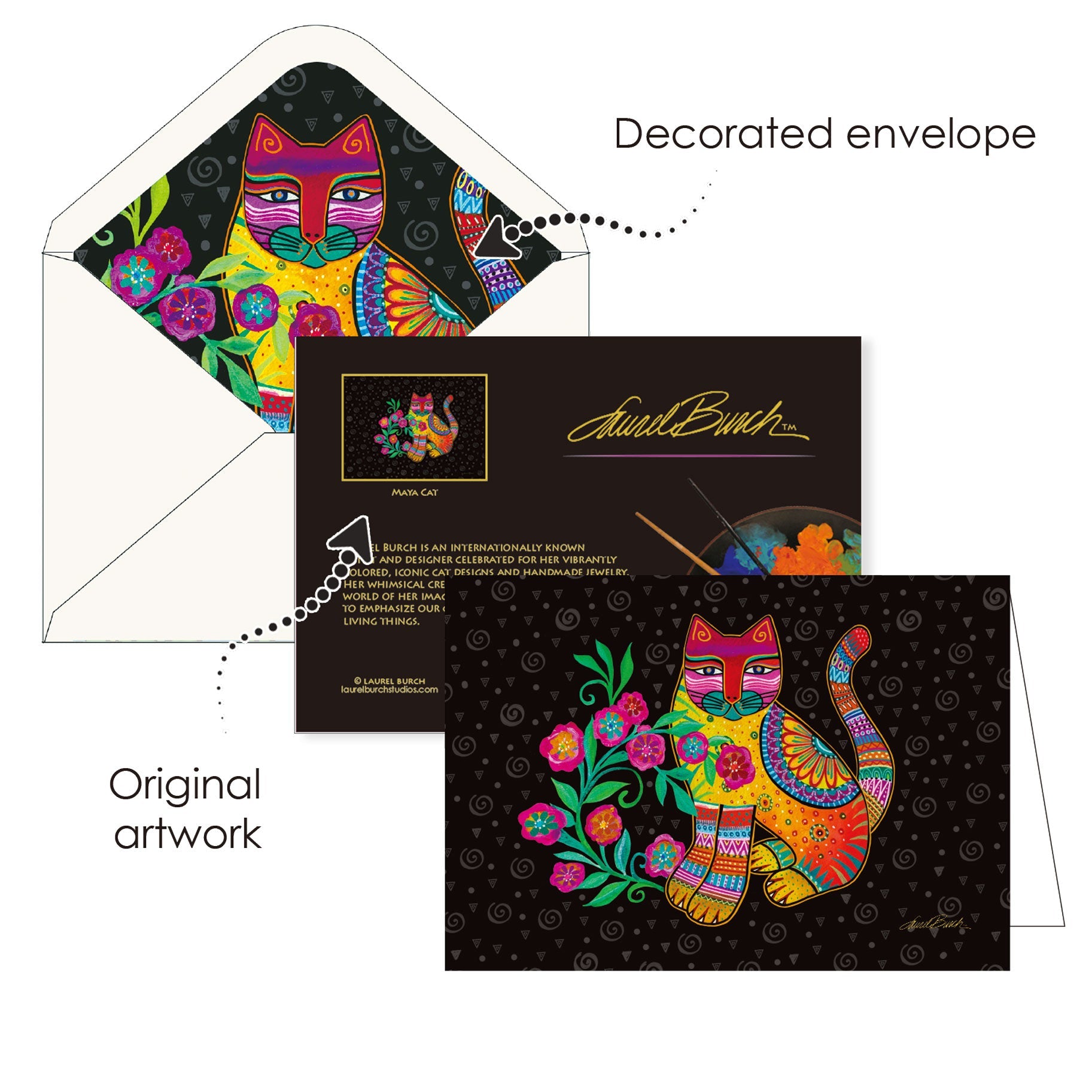Laurel Burch Cats - Boxed Blank Note Cards – Set of 16 in a Keepsake Gift Box