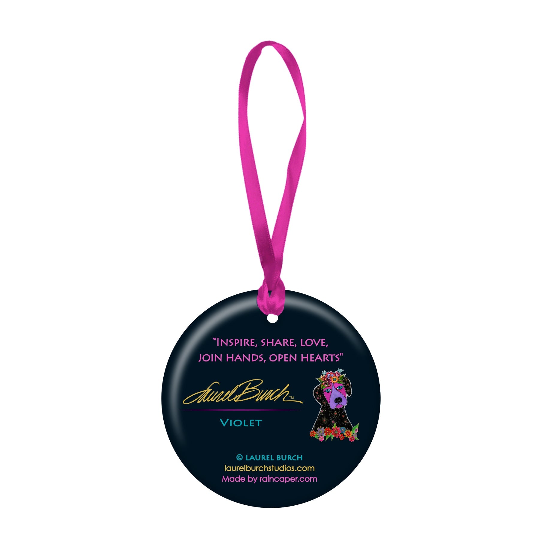 Laurel Burch Violet Dog Porcelain Keepsake Ornament – Flat Ceramic, Gift-Ready