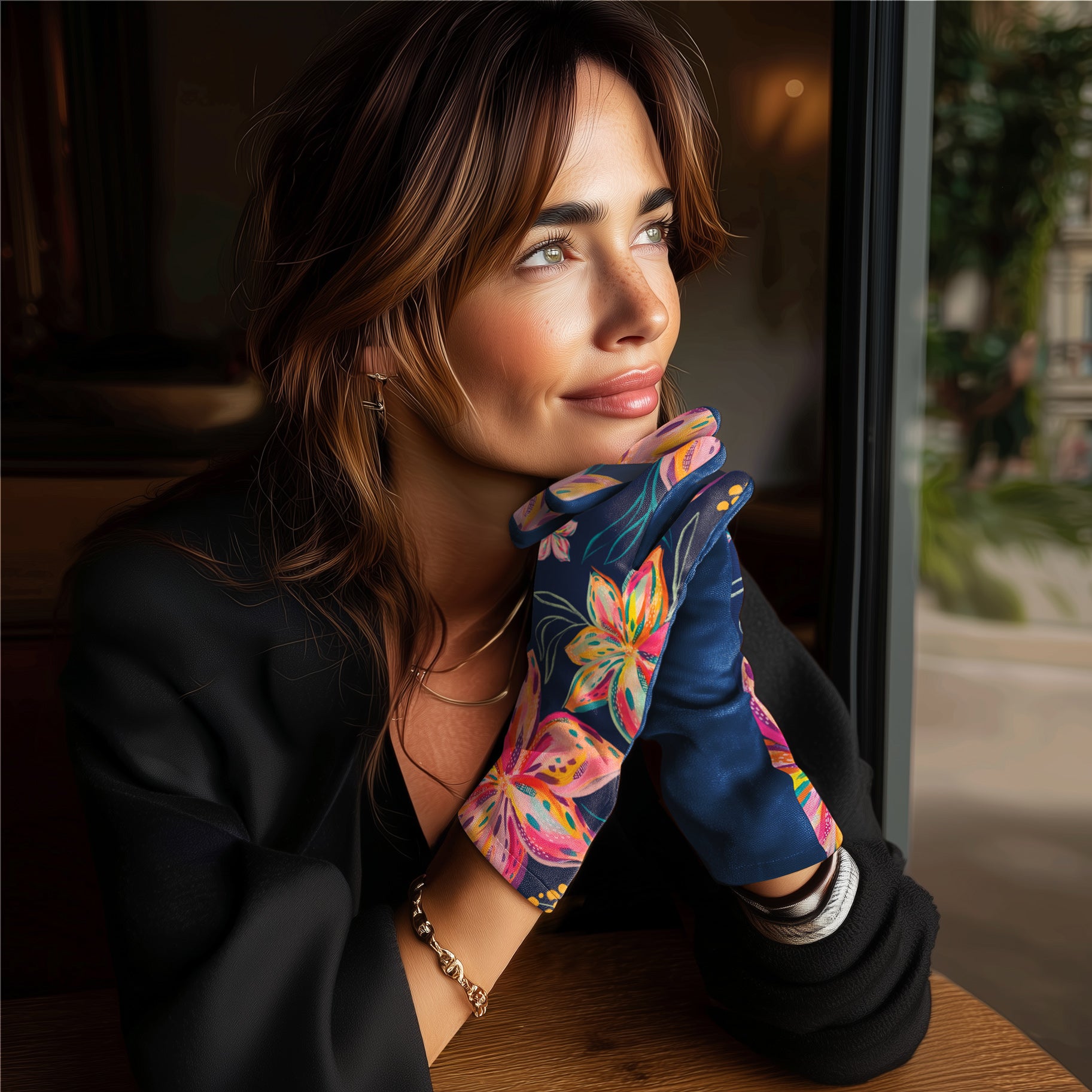 EttaVee Bold Flowers Womens Touch Screen Gloves - One Size Fits All