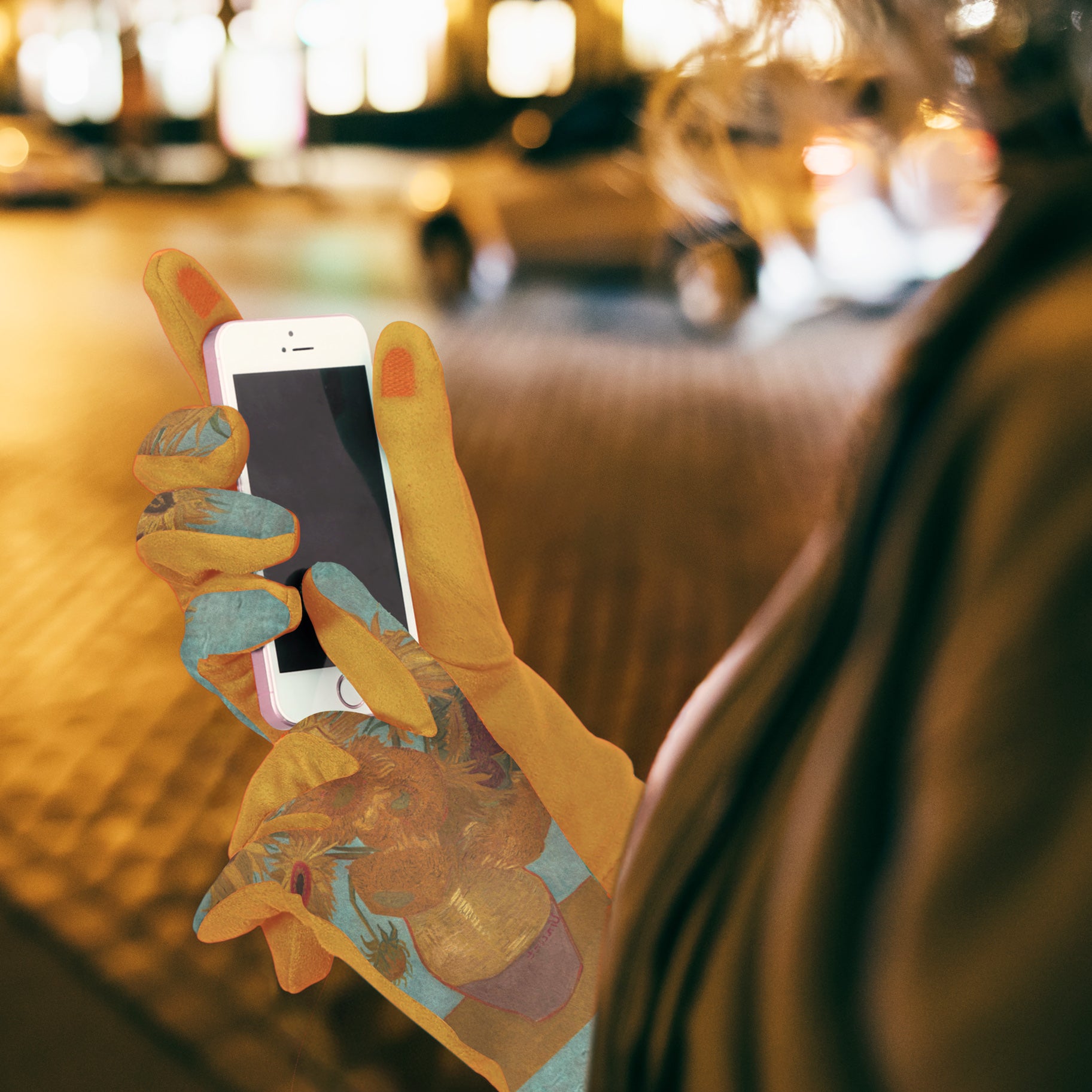 Celebrate brightness and light with a pair of van Gogh Sunflowers Gloves. The artwork features Vincent van Gogh's sweet still life titled Sunflowers, and will add a welcome splash of color to your day. While living in an airy yellow house in the south of France, van Gogh often chose the humble sunflower as his subject, believing that the flower conveyed gratitude and warmth.