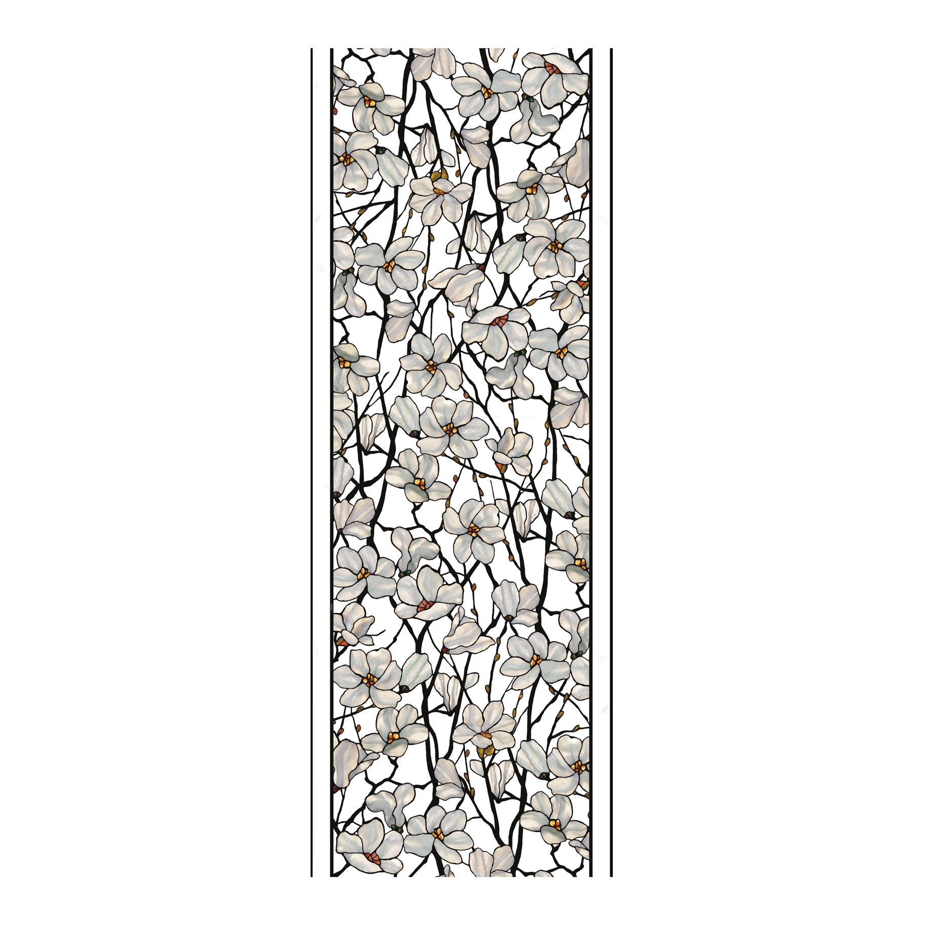 The design features Louis C. Tiffany's Magnolia, a masterwork in leaded glass. The artist designed this piece for his own home at Laurelton Hall, where its understated pearl and silver hues were the centerpiece of the grand library. It now is a part of the permanent collection at the Charles Hosmer Morse Museum of American Art.