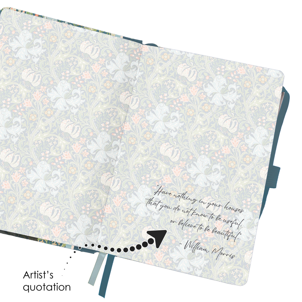 William Morris Golden Lily - Dot Grid Journal – Hardcover, Pockets, Ribbon Bookmarks