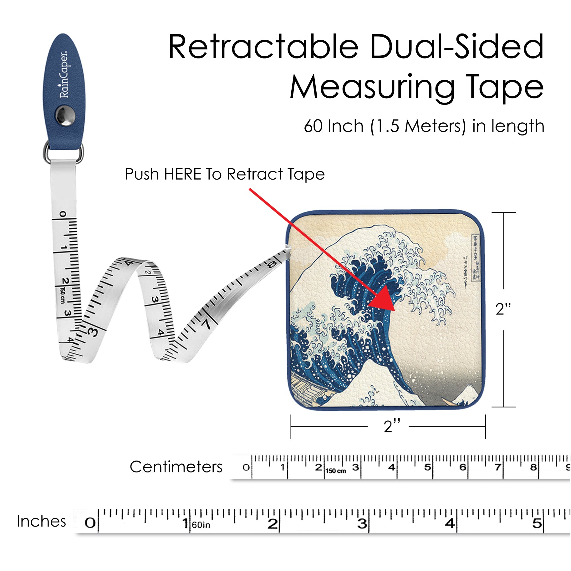 Keep reliable measurements close at hand with this RainCaper Hokusai "The Great Wave" Compact Retractable Tape Measure — a must-have addition to any craft room, purse, backpack, or glove compartment. This stylish tape measure brings an artistic touch to your everyday tasks.